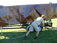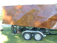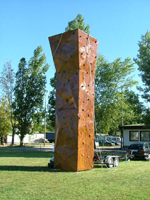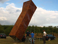 A mászófal 7 méter magas és egy utánfutón helyezkedik el, amiről rögtön rögzíteni is lehet. Így nem kell bajlódni az összeszereléssel se, meg a fal fixálásával sem.