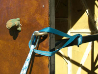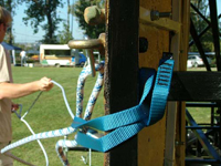 Ezután beállítjuk a köteleket, amiket még a felállítás előtt dupla biztosítással rögzítünk.