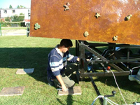 A rendezvényre nem kell hosszú órákkal előbb megérkeznünk, mint a kitűzött vendégérkezés időpontja. Mi maximum 30 perc alatt felhasználásra alkalmas állapotba hozzuk a falat, amit már nem kell alkatrészekből összeszerelni csak egy hidraulika segítségével magáról az utánfutóról kell felállítani, és végül tíz ponton stabilizálni.